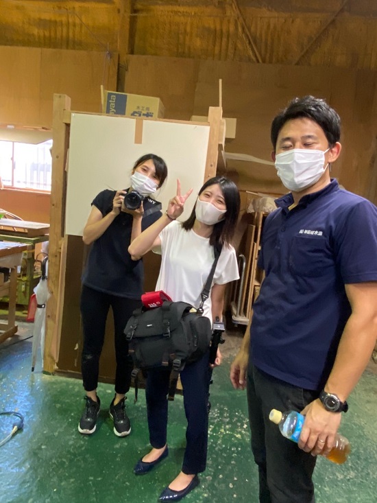 2021-09-02 写真撮影 こんにちは。 小さな大工さんスタッフのいとうです。 近々、久留米市のデザイン企画事務所「サンカクキカク」さんに会社のHPを新しくつくってもらうことになりました。 昨日はそのための写真撮影が行われました。 ↓サンカクキカクの田中さん&田中さん。ありがとうございました! ↓集合写真の様子。常務いわく、イメージはTOKIOさんとのこと。笑 ↓工場内も説明しながらいろいろな写真を撮っていただきました。 どんなHPが完成するか楽しみです! 完成したらまたお知らせしますね。